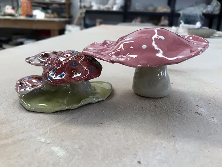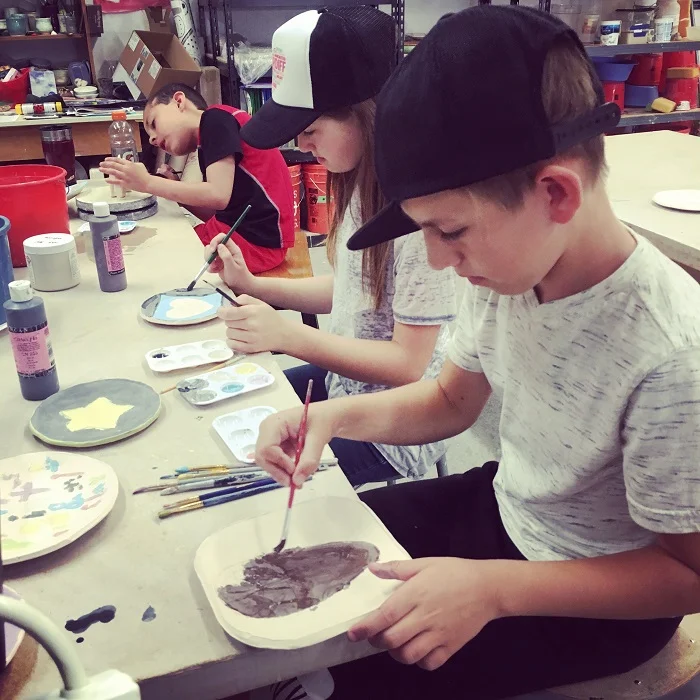 Students glazing their clay pieces.
