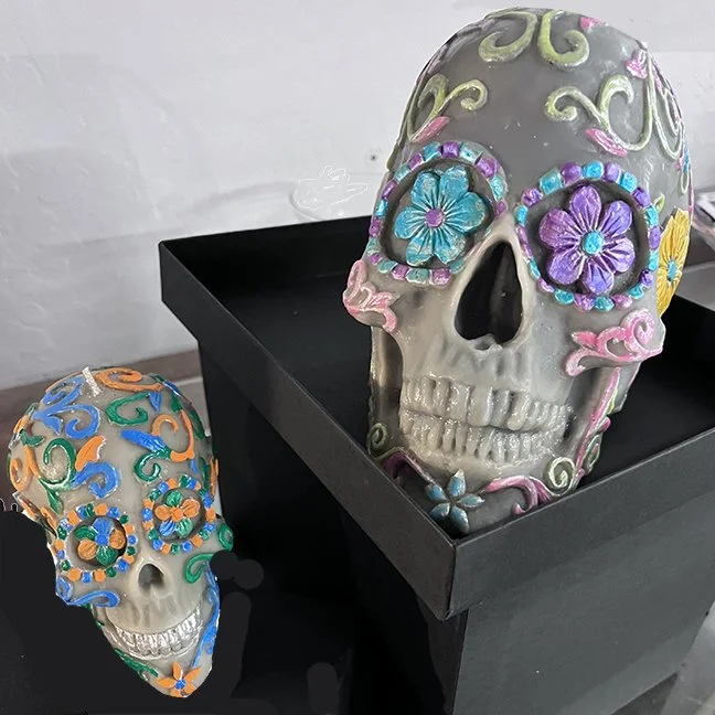 Just in time for Dia de Los Muertos and Halloween, paint your own premium bees wax skull candle any way you like to create a one of a kind centerpiece. You will get one 4 1/4” x 2 3/4” x 3” bee’s wax candle and all the materials you need to paint it.